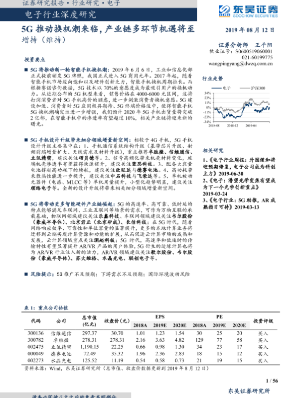 【东吴证券】【20190812】电子行业深度研究:5G推动换机潮来临,产业链多环节机遇将至-56页