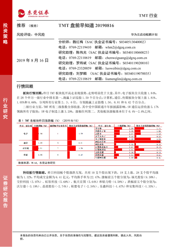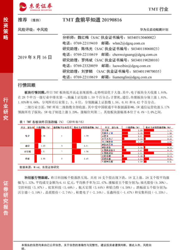 【东莞证券】【20190816】TMT盘前早知道:华为云启动鲲鹏计划-5页