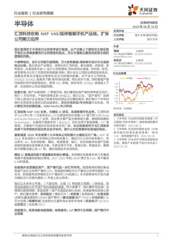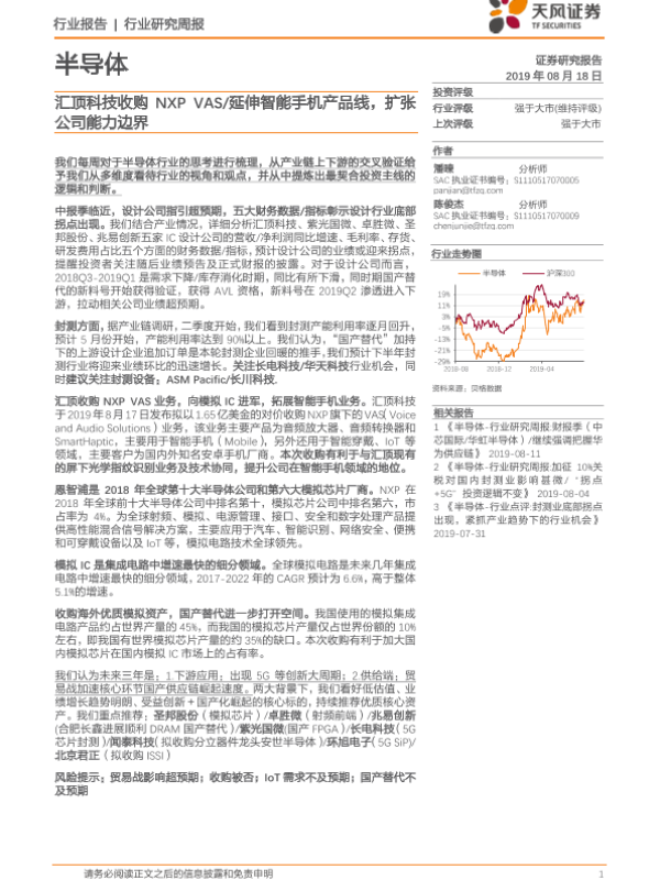 【天风证券】【20190818】20190818-天风证券-半导体行业研究周报:汇顶科技收购NXP VAS 延伸智能手机产品线,扩张公司能力边界-10页