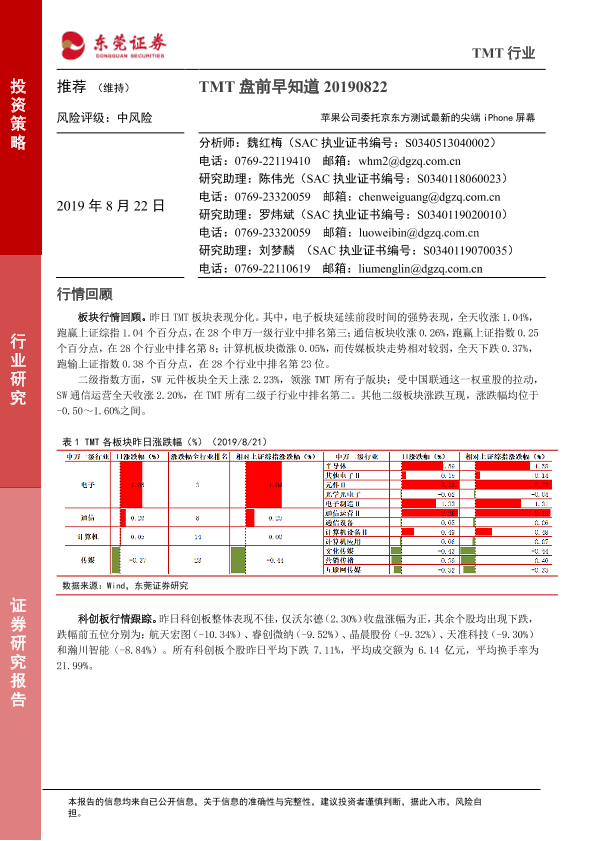 【东莞证券】【20190822】TMT盘前早知道:苹果公司委托京东方测试最新的尖端iPhone屏幕-5页