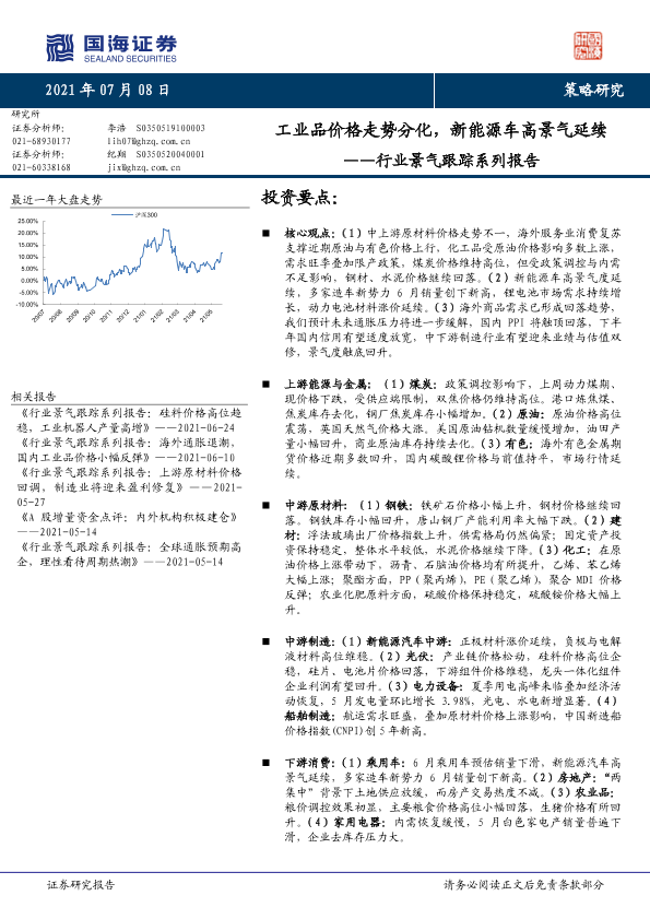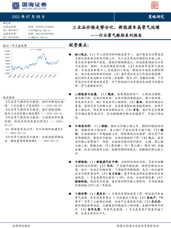 【国海证券】【20210708】行业景气跟踪系列报告:工业品价格走势分化,新能源车高景气延续-38页