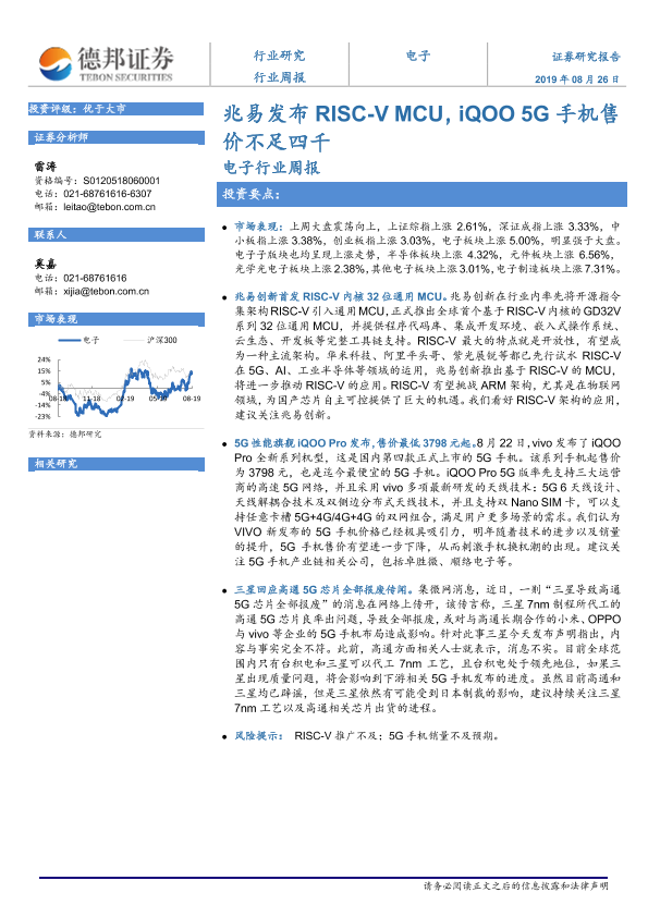 【德邦证券】【20190826】20190826-德邦证券-电子行业周报:兆易发布RISC-V MCU,iQOO 5G手机售价不足四千-4页