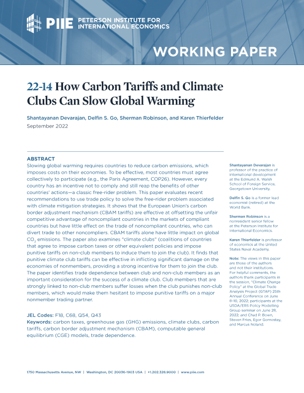 【彼得森经济研究所】【202209】How Carbon Tariffs and Climate Clubs Can Slow Global Warming-45页