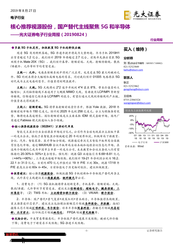 【光大证券】【20190827】电子行业周报:核心推荐视源股份,国产替代主线聚焦5G和半导体-18页