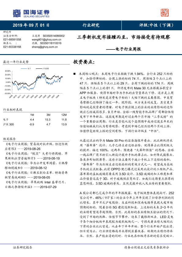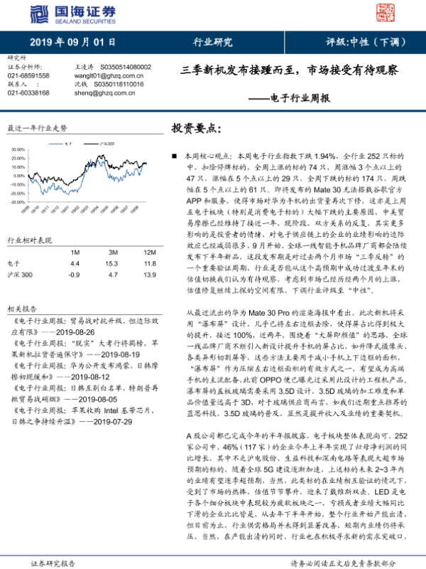 【国海证券】【20190901】电子行业周报:三季新机发布接踵而至,市场接受有待观察-13页