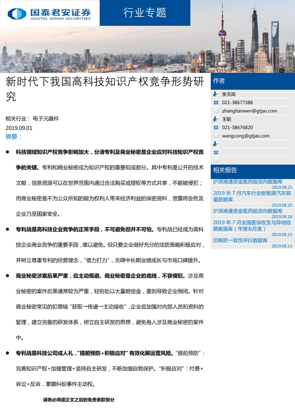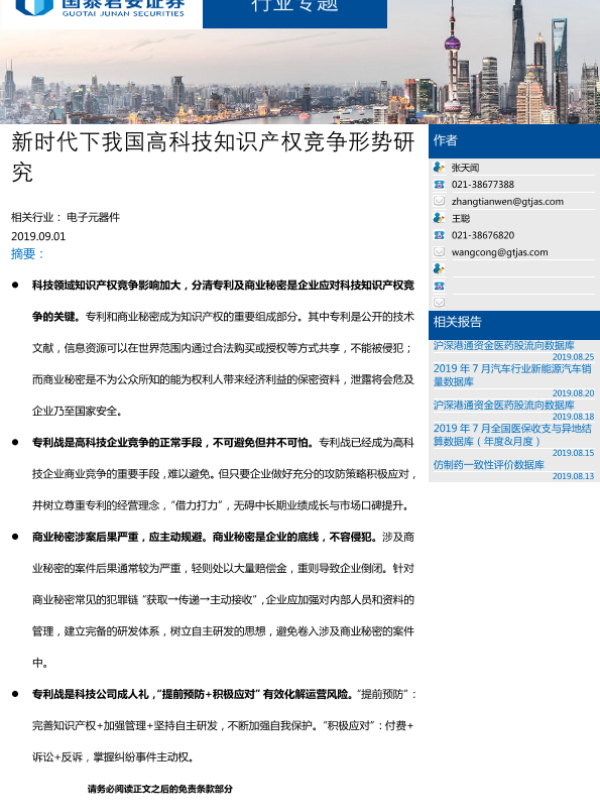 【国泰君安证券】【20190901】新时代下我国高科技知识产权竞争形势研究-20页