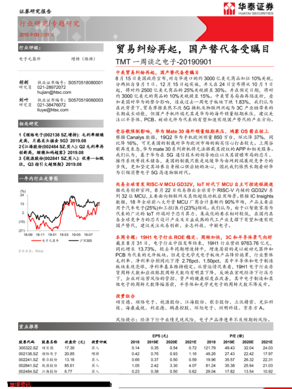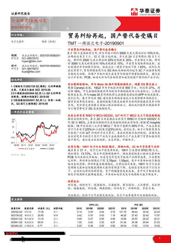 【华泰证券】【20190901】TMT一周谈之电子:贸易纠纷再起,国产替代备受瞩目-14页