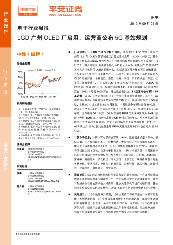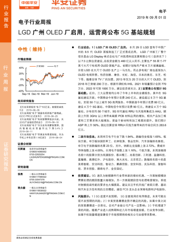 【平安证券】【20190901】20190901-平安证券-电子行业周报:LGD广州OLED厂启用,运营商公布5G基站规划-5页