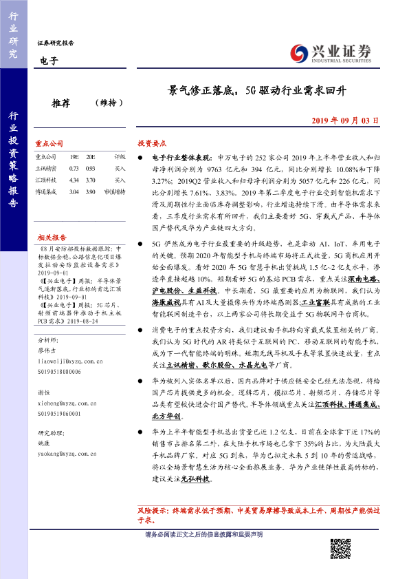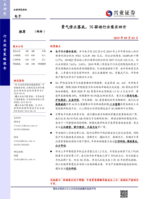 【兴业证券】【20190903】景气修正落底,5G驱动行业需求回升-16页