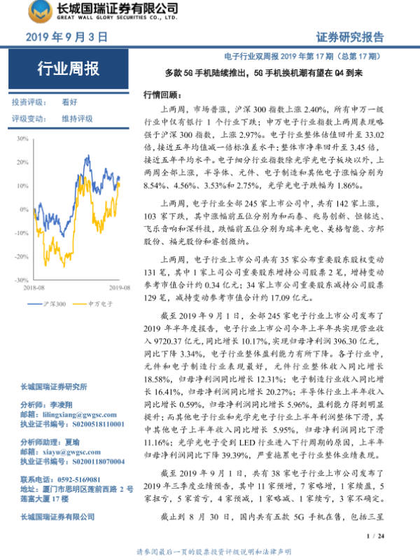 【长城国瑞证券】【20190903】多款5G手机陆续推出,5G手机换机潮有望在Q4到来-24页