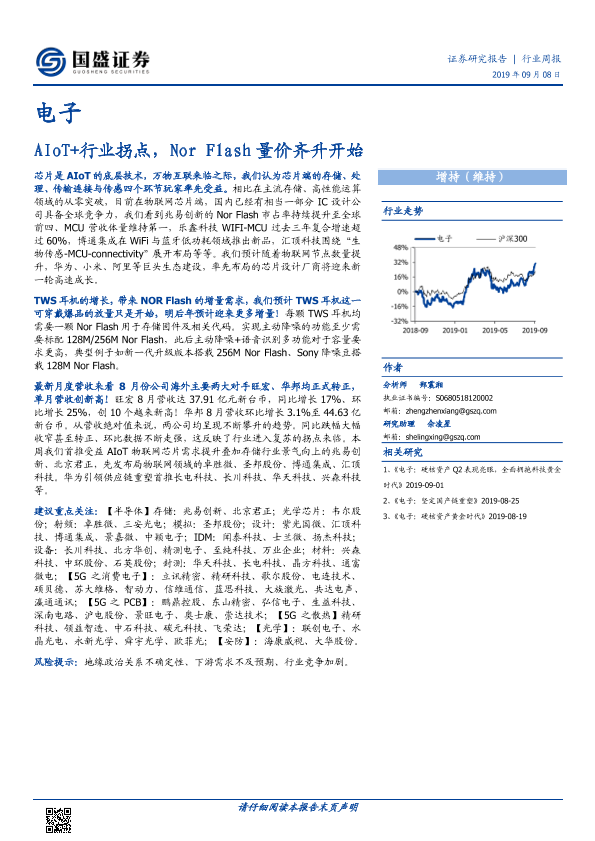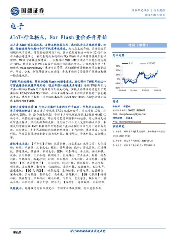 【国盛证券】【20190908】电子行业周报:AIoT+行业拐点,Nor Flash量价齐升开始-14页