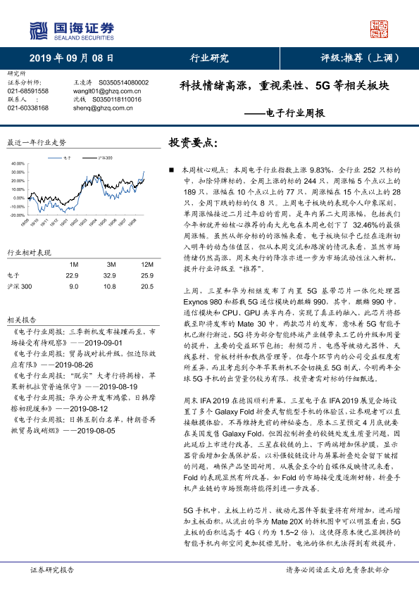 【国海证券】【20190908】电子行业周报:科技情绪高涨,重视柔性、5G等相关板块-14页