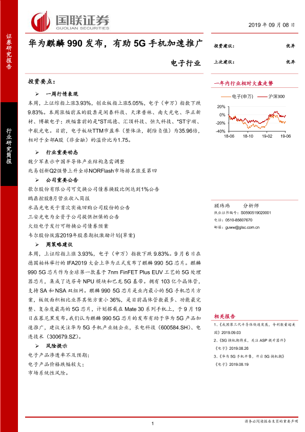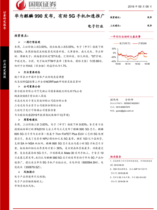 【国联证券】【20190908】电子行业:华为麒麟990发布,有助5G手机加速推广-8页