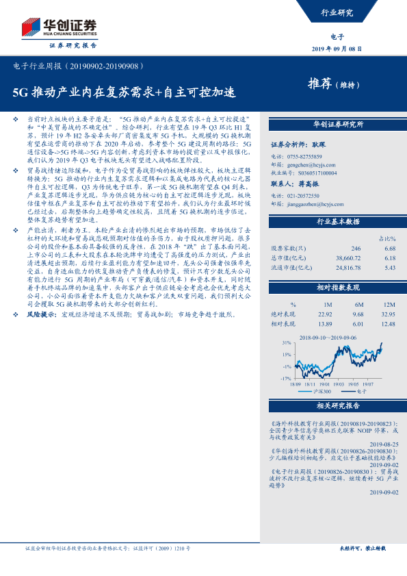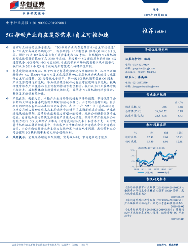 【华创证券】【20190908】电子行业周报:5G推动产业内在复苏需求+自主可控加速-17页