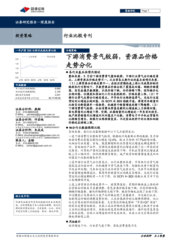 【国信证券】【20210706】行业比较专刊:下游消费景气较弱,资源品价格走势分化-25页