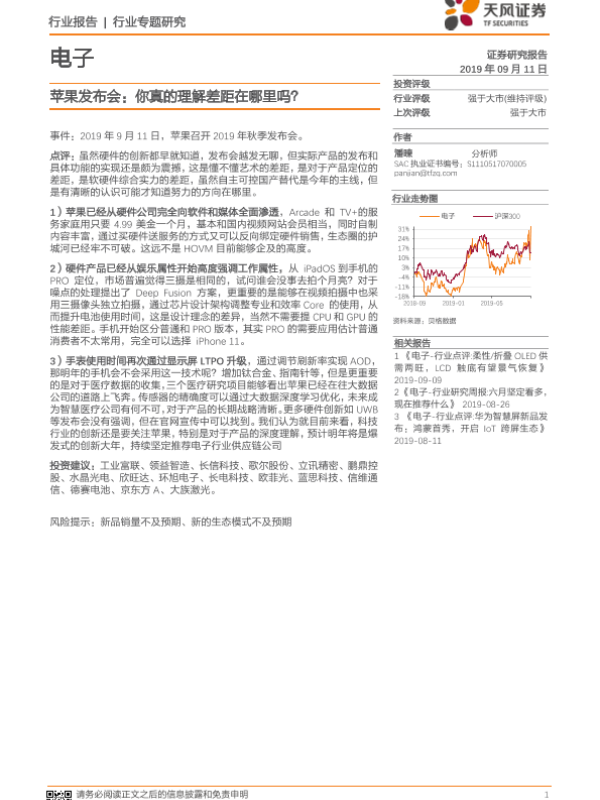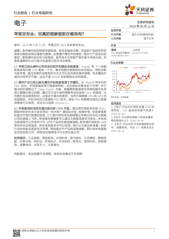 【天风证券】【20190911】20190911-天风证券-电子行业专题研究:苹果发布会:你真的理解差距在哪里吗?-3页