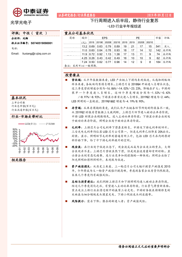 LED行业 下行周期 半年报综述 行业复苏 证券研究