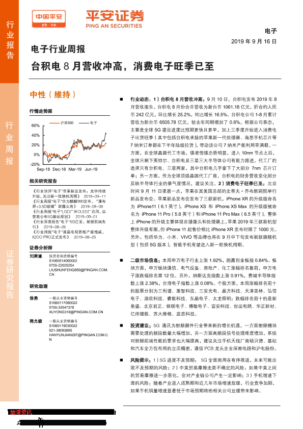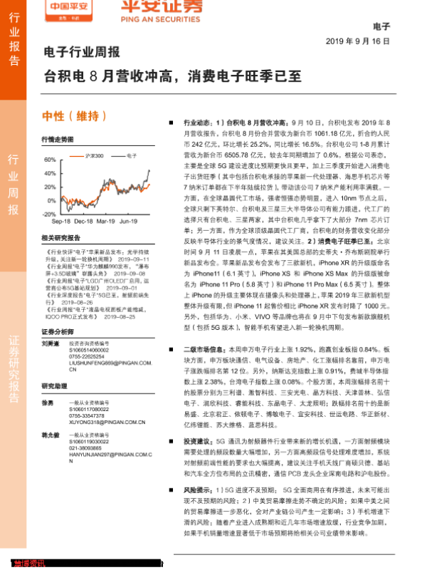 【平安证券】【20190916】电子行业周报:台积电8月营收冲高,消费电子旺季已至-5页