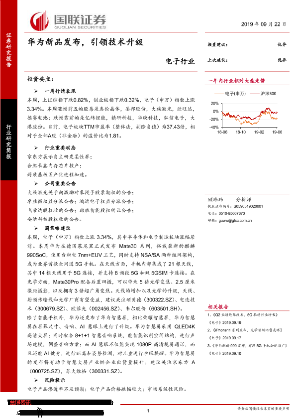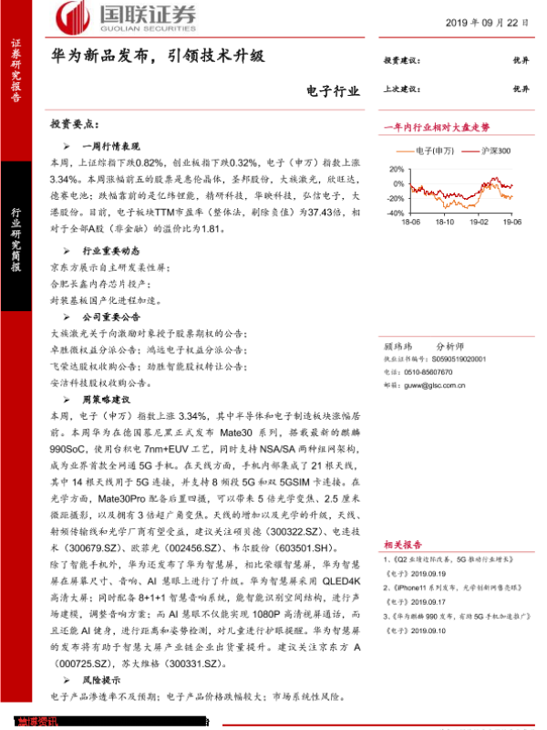 【国联证券】【20190922】电子行业:华为新品发布,引领技术升级-9页