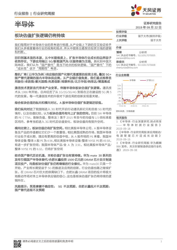 【天风证券】【20190922】半导体行业研究周报:板块估值扩张逻辑仍将持续-9页