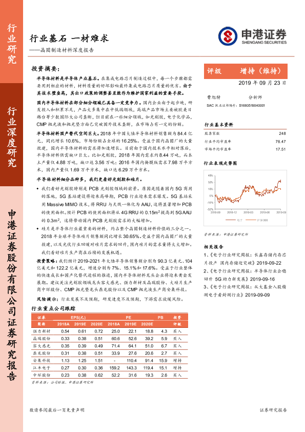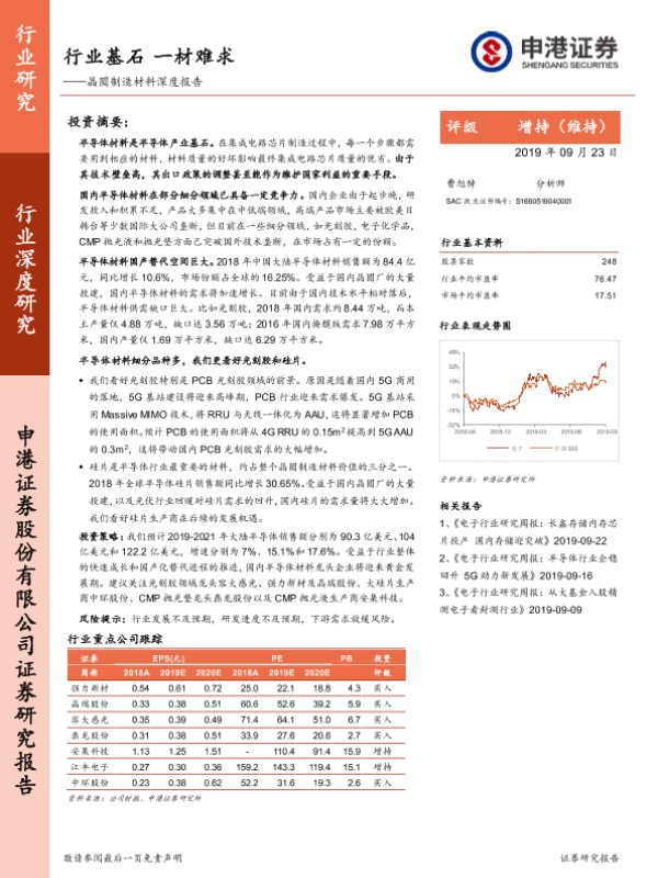【申港证券】【20190923】晶圆制造材料深度报告:行业基石 一材难求-59页