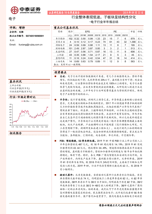 【中泰证券】【20190922】20190922-中泰证券-电子行业半年报总结:行业整体表现低迷,子板块呈结构性分化-69页