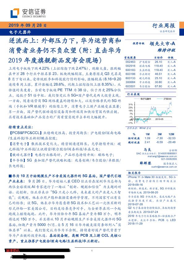 【安信证券】【20190928】逆流而上:外部压力下,华为运营商和消费者业务仍不负众望(附:直击华为2019年度旗舰新品发布会现场)-14页