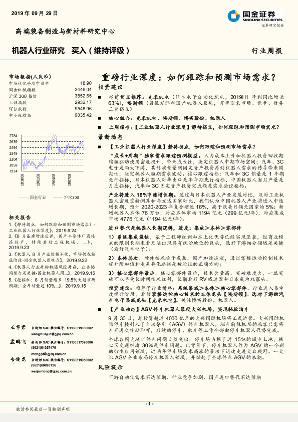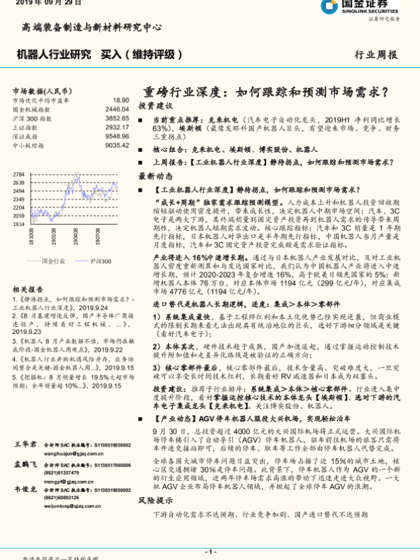【国金证券】【20190929】机器人行业研究:重磅2019 09 29行业深度:如何跟踪和预测市场需求?-12页