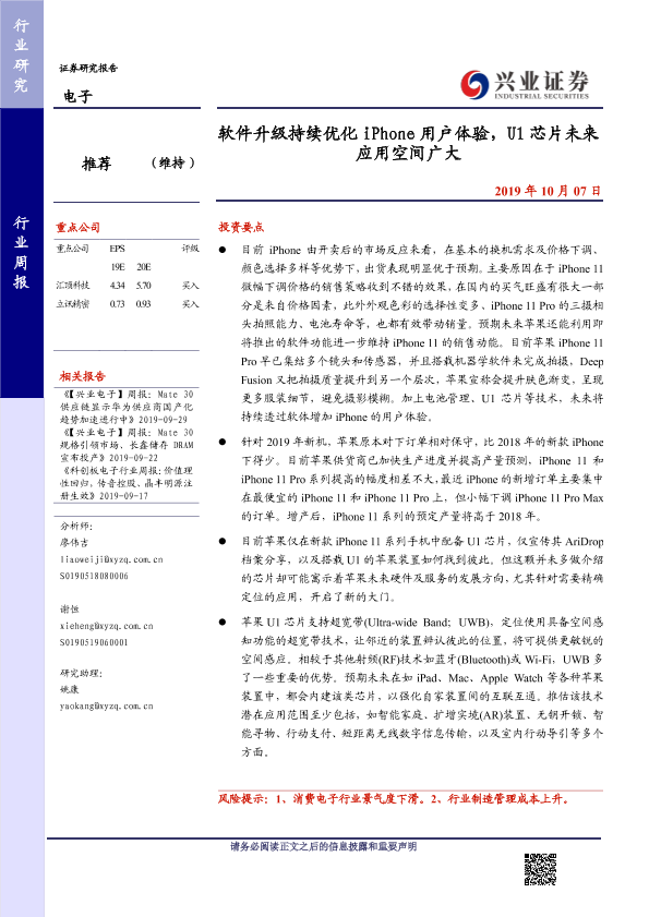 【兴业证券】【20191007】软件升级持续优化 iPhone用户体验,U1芯片未来应用空间广大-11页