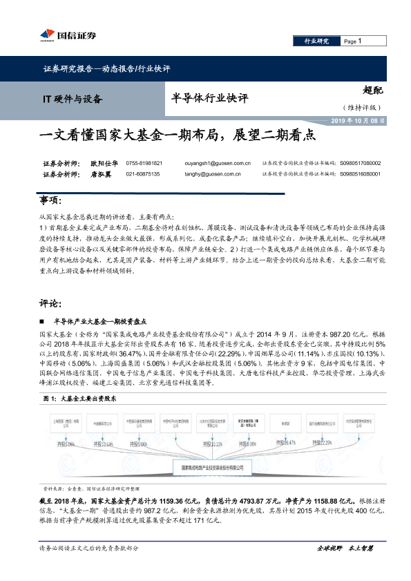 【国信证券】【20191008】20191008-国信证券-半导体行业快评:一文看懂国家大基金一期布局,展望二期看点-10页