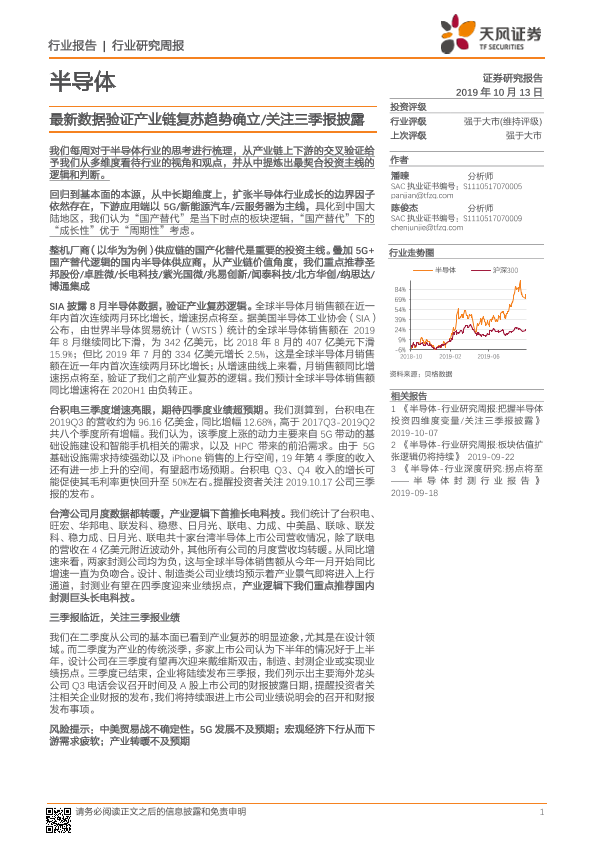 【天风证券】【20191013】20191013-天风证券-半导体行业研究周报:最新数据验证产业链复苏趋势确立 关注三季报披露-10页