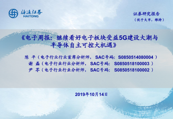 【海通证券】【20191014】电子周报:继续看好电子板块受益5G建设大潮与半导体自主可控大机遇-8页