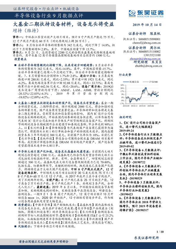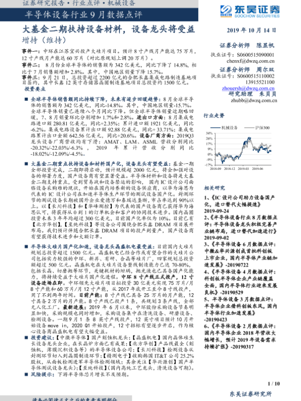 【东吴证券】【20191014】半导体设备行业9月数据点评:大基金二期扶持设备材料,设备龙头将受益-10页