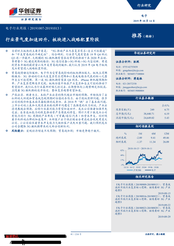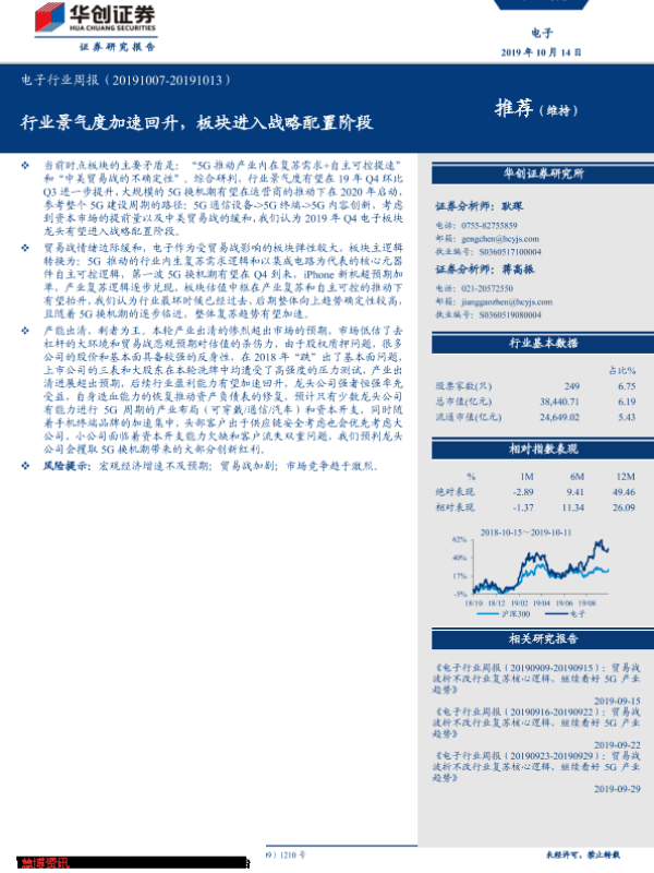 【华创证券】【20191014】电子行业周报:行业景气度加速回升,板块进入战略配置阶段-17页