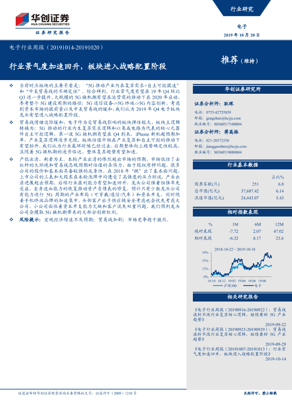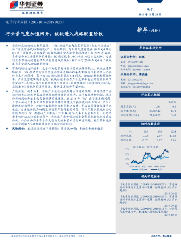 【华创证券】【20191020】20191020-华创证券-电子行业周报:行业景气度加速回升,板块进入战略配置阶段-17页