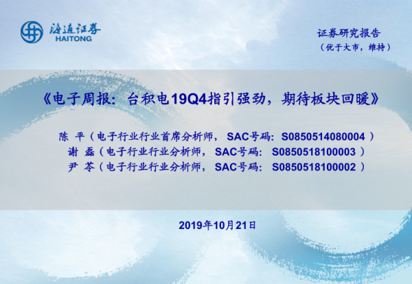 【海通证券】【20191021】电子周报:台积电19Q4指引强劲,期待板块回暖-8页