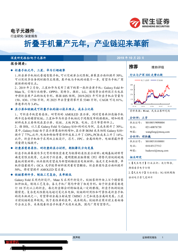 【民生证券】【20191023】20191023-民生证券-电子元器件深度报告:折叠手机量产元年,产业链迎来革新-31页