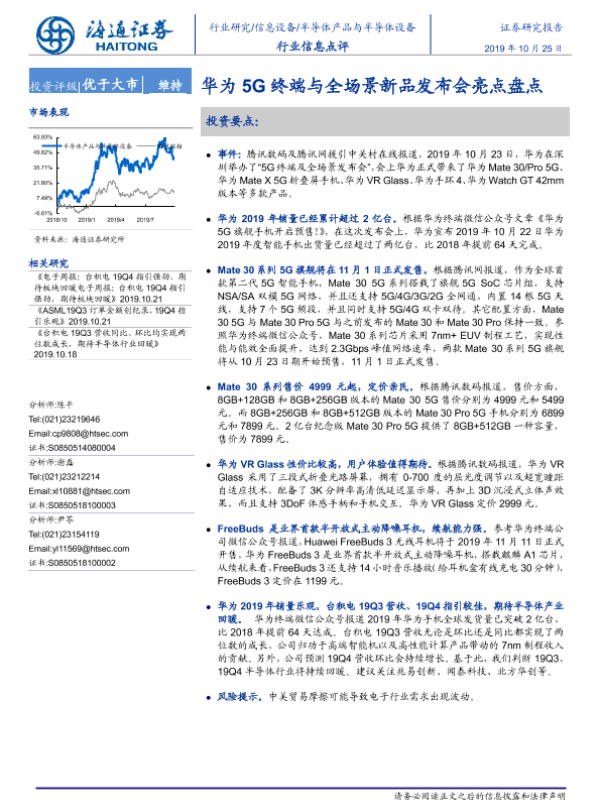 【海通证券】【20191025】半导体产品与半导体设备行业信息点评:华为5G终端与全场景新品发布会亮点盘点-2页