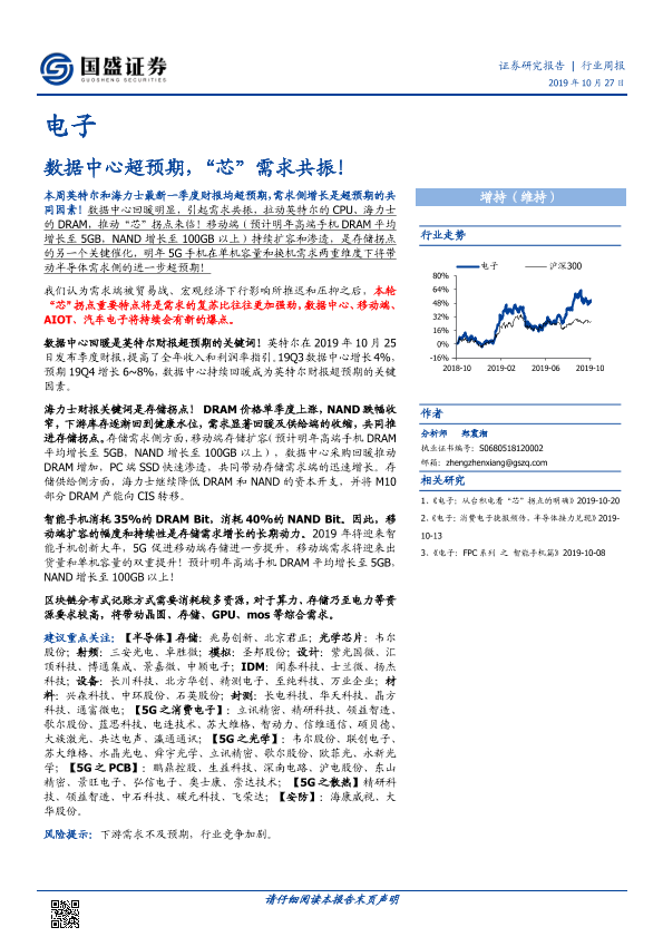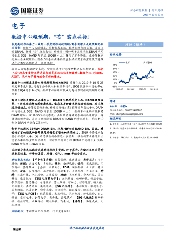 【国盛证券】【20191027】电子行业周报:数据中心超预期,“芯”需求共振!-16页