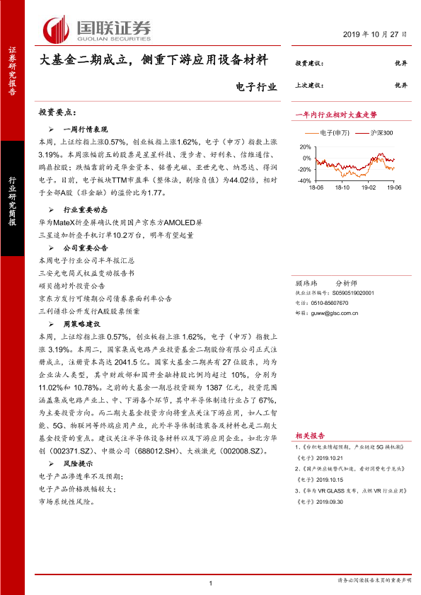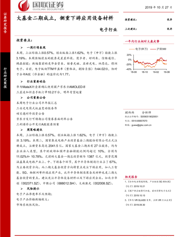 【国联证券】【20191027】电子行业:大基金二期成立,侧重下游应用设备材料-9页