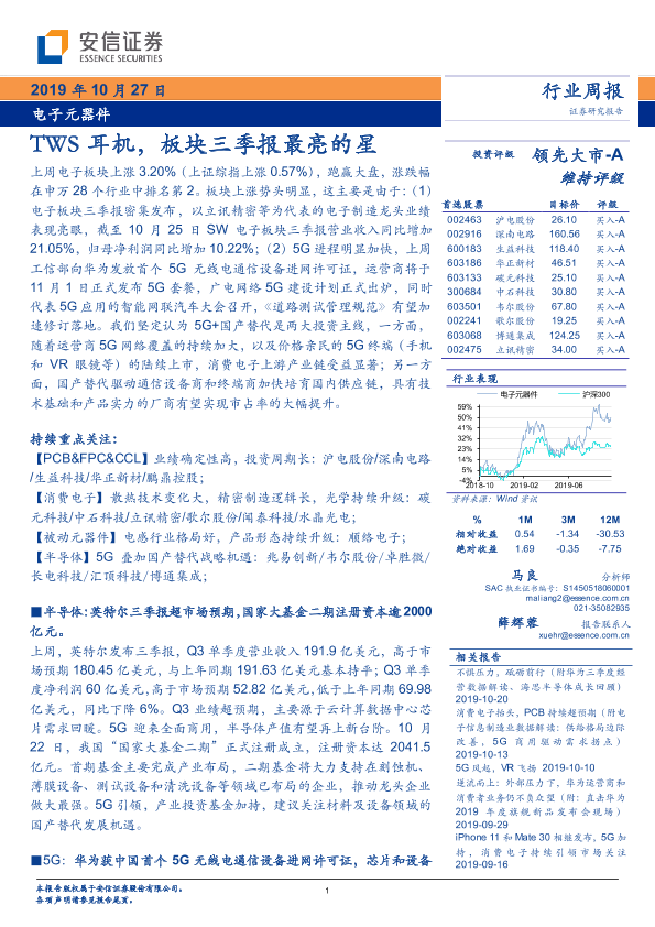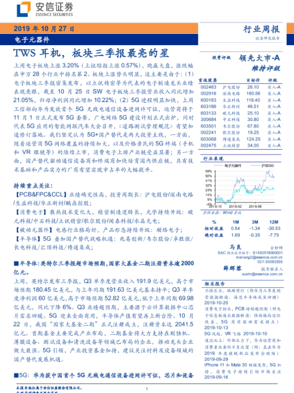 【安信证券】【20191027】电子元器件行业周报:TWS耳机,板块三季报最亮的星-20页