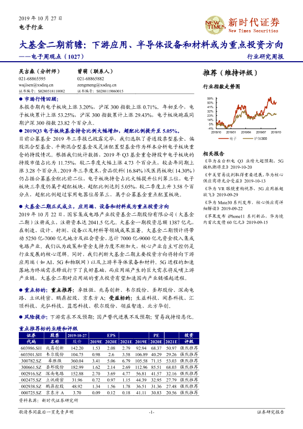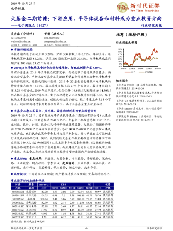 【新时代证券】【20191027】电子周观点:大基金二期前瞻:下游应用、半导体设备和材料或为重点投资方向-16页