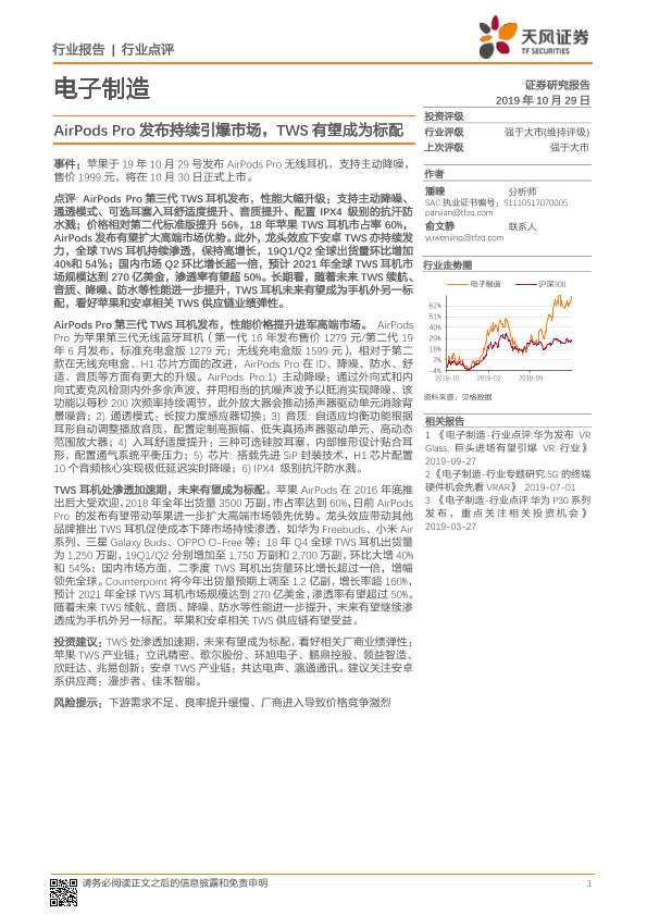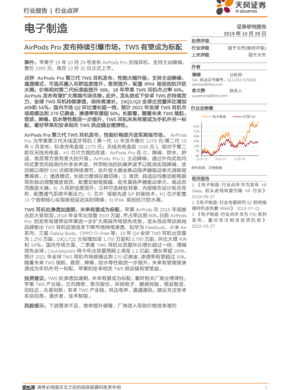 【天风证券】【20191029】电子制造行业点评:AirPods Pro发布持续引爆市场,TWS有望成为标配-2页