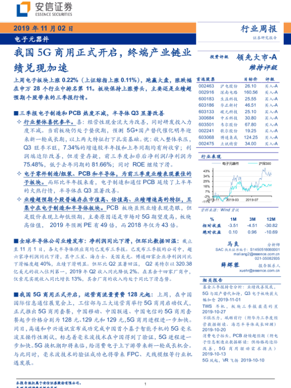 5G商用 业绩表现 产业链 半导体 电子元器件