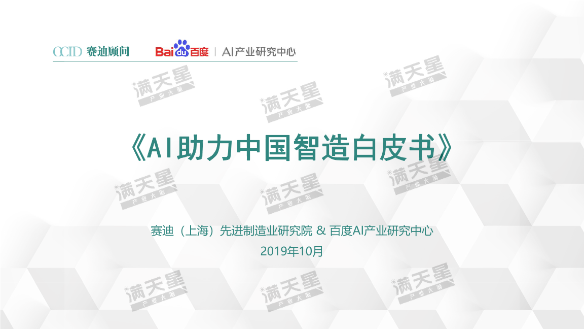 【赛迪(上海)先进制造业研究院&百度AI产业研究中心】【201910】AI助力中国智造白皮书-41页