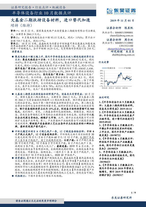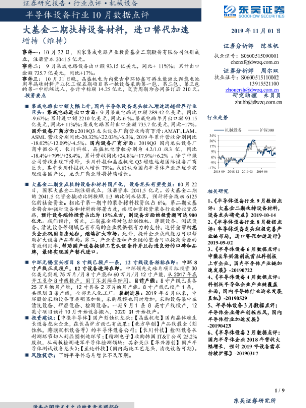 【东吴证券】【20191101】半导体设备行业10月数据点评:大基金二期扶持设备材料,进口替代加速-9页
