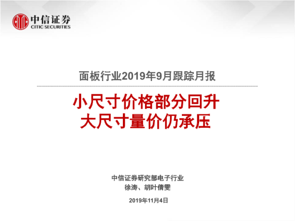 【中信证券】【20191104】面板行业2019年9月跟踪月报:小尺寸价格部分回升 大尺寸量价仍承压-19页