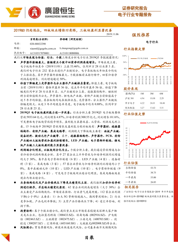 业绩分析 估值分析 季度报告 市场表现 电子行业