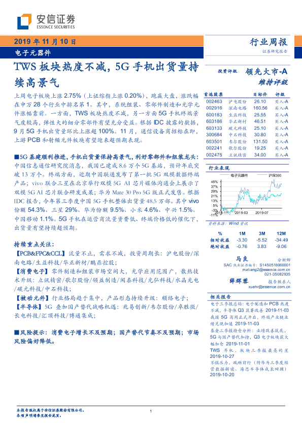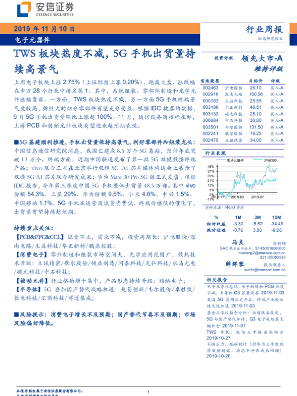【安信证券】【20191110】20191110-安信证券-电子元器件行业周报:TWS板块热度不减,5G手机出货量持续高景气-15页