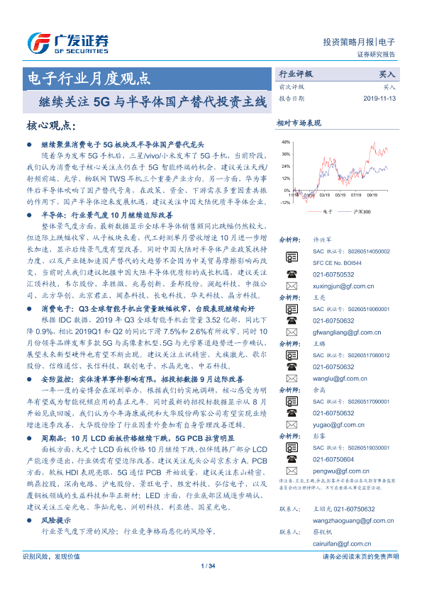 【广发证券】【20191113】20191113-广发证券-电子行业月度观点:继续关注5G与半导体国产替代投资主线-34页